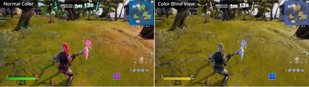 در میان بازیهایی که به مشکلات گیمرهای دارای کوررنگی توجه کردهاند، فورتنایت (Fortnite) یکی از بهترینهاست. این بازی با ارائه تنظیمات کامل و متنوع برای کوررنگی (Protanope، Deuteranope و Tritanope)، به بازیکنان اجازه میدهد تا رنگها و کنتراست بازی را به شکلی تغییر دهند که برایشان قابل تشخیص باشد. این تنظیمات نه تنها رنگهای محیط و رابط کاربری را تغییر میدهد، بلکه حتی به بازیکنان کمک میکند تا آیتمهای روی زمین را بهتر ببینند و تشخیص دشمنان از همتیمیها را آسانتر میکند. این رویکرد فورتنایت نشان میدهد که با کمی توجه و طراحی مناسب، میتوان بازی را برای همه افراد قابل دسترستر کرد و تجربه گیمینگ را برای طیف وسیعتری از بازیکنان لذتبخش ساخت.