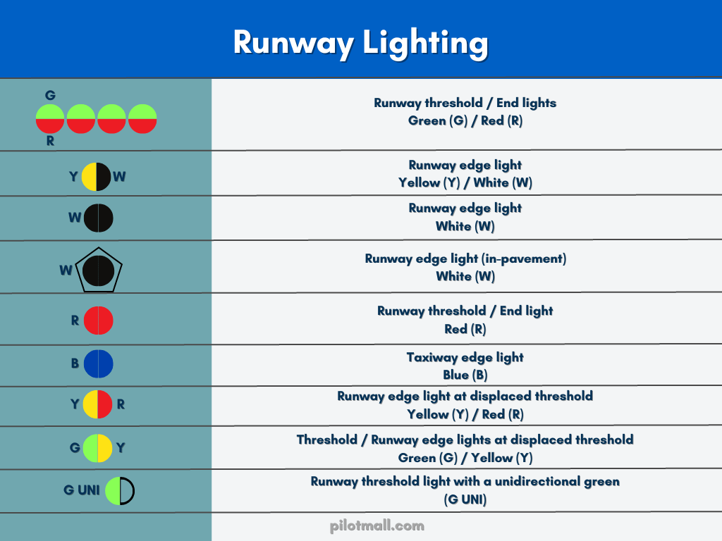 چراغهای برج مراقبت: در صورت خرابی رادیو، برج مراقبت با چراغهای رنگی با هواپیما ارتباط برقرار میکند. (سبز ثابت برای پرواز/فرود، قرمز ثابت برای توقف، و غیره). اشتباه گرفتن این رنگها میتواند فاجعهبار باشد.